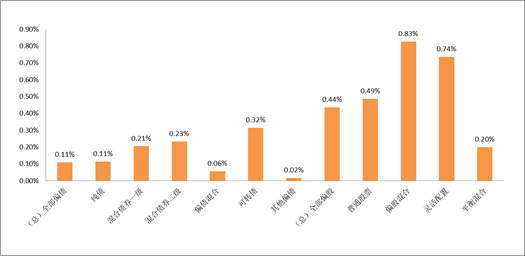 從圖4可知,上周公募基金市場中偏債型基金和偏股型基金均實(shí)現(xiàn)正向漲幅,全部偏債基金平均收益率為0.11%,全部偏股基金平均收益率為0.44%。全部偏債基金中混合一級債基和混合二級債基,周漲幅分別為0.21%、0.23%;全部偏股型基金中偏股混合型基金漲幅居前,平均周漲幅為0.83%。