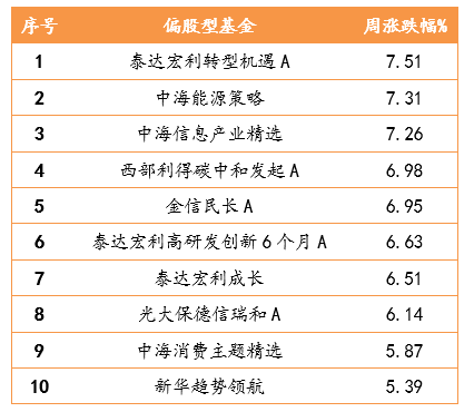表1 部分基金業(yè)績周度表現(xiàn)TOP10