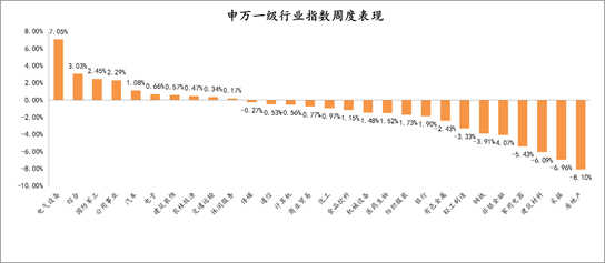 圖2 申萬一級行業(yè)指數(shù)周度表現(xiàn)