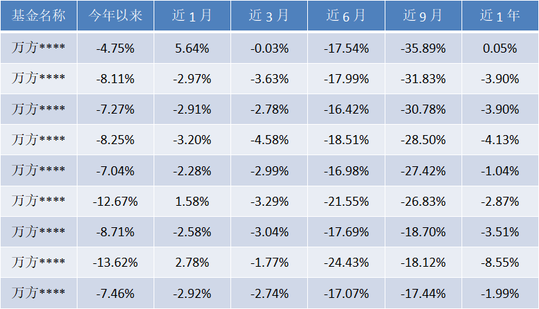 今年市場反復(fù)震蕩、板塊快速輪動(dòng),對(duì)于這種專注于某些行業(yè)的價(jià)值型選手特別不友好。錢偉管理的產(chǎn)品在今年震蕩的市場下也發(fā)生了大幅回撤。表1為可統(tǒng)計(jì)的萬方旗下基金產(chǎn)品的業(yè)績表現(xiàn)情況。從表中可以看出,近9個(gè)月,萬方旗下私募產(chǎn)品的收益發(fā)生大幅下跌,在可統(tǒng)計(jì)的9只產(chǎn)品中,3只產(chǎn)品的收益下跌超過30%,3只產(chǎn)品的收益跌幅處于20%-30%之間,還有3只收益跌幅也超過15%。