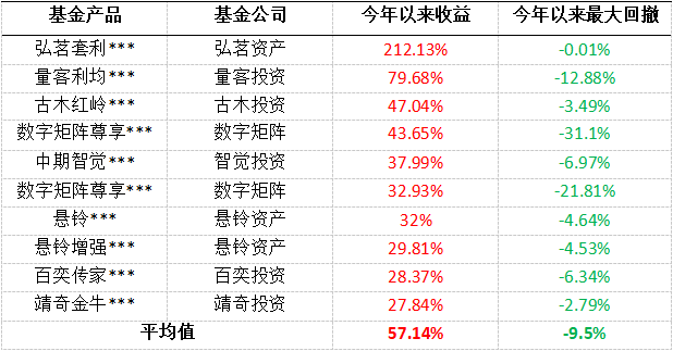 目前大部分套利策略在今年的收益率在8%-20%左右。由于統(tǒng)計(jì)套利風(fēng)險(xiǎn)大于無(wú)風(fēng)險(xiǎn)套利,其收益表現(xiàn)也表現(xiàn)得大于無(wú)風(fēng)險(xiǎn)套利,而且市場(chǎng)容納量上也顯著大于無(wú)風(fēng)險(xiǎn)套利。根據(jù)統(tǒng)計(jì)數(shù)據(jù)顯示,采用套利策略的備案產(chǎn)品共計(jì)265只,排在前五位其今年以來收益均超過了30%,排在首位的其今年以來收益高達(dá)212.13%,采用套利策略業(yè)績(jī)也能翻倍,著實(shí)讓投資者感到詫異。