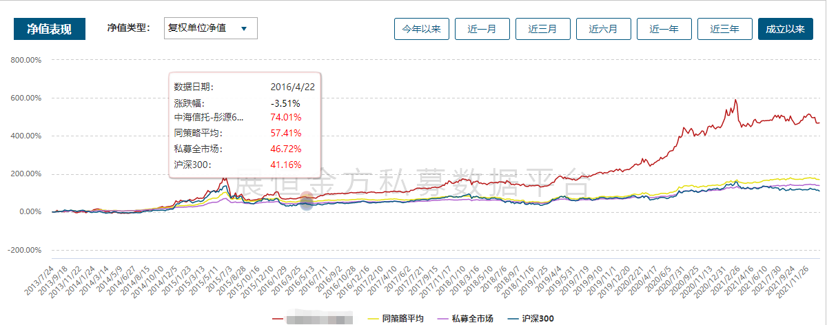 雖然經(jīng)歷了“公奔私”的轉(zhuǎn)型,但管華雨的業(yè)績(jī)表現(xiàn)貌似并沒有經(jīng)歷過渡期的下降,截至2021年12月31日,其管理的私募產(chǎn)品總回報(bào)達(dá)422.18%,大幅跑贏滬深300指數(shù)。其代表作同望******,成立以來收益達(dá)368.39%,最大回撤22.61%,大幅跑贏同類基金和滬深300指數(shù)。同類排名28/6638。