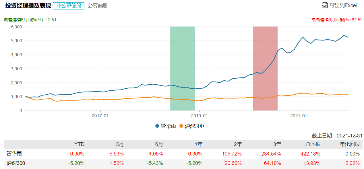 管華雨,復(fù)旦大學(xué)國(guó)際金融專業(yè)博士,CFA,CICPA,從業(yè)年限21年,有著14年的投資經(jīng)理年限。管華雨最早曾是業(yè)內(nèi)知名的公募基金經(jīng)理,加入彤源投資后負(fù)責(zé)該機(jī)構(gòu)的主要私募產(chǎn)品,完成了公奔私的華麗轉(zhuǎn)身。