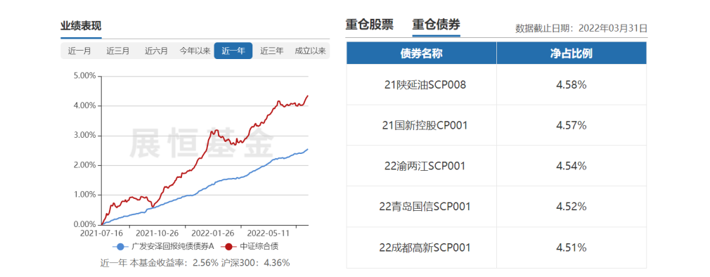 圖3 廣發(fā)安澤短債債券A業(yè)績表現(xiàn)(左)及重倉債券(右)