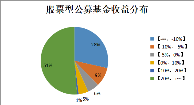 與股票策略私募基金相比,今年以來股票型公募基金整體的虧損比例在43.31%,其中僅37.74%的虧損幅度超過了-5%。而且,股票型公募基金今年以來收益率超過20%占比超過50%。