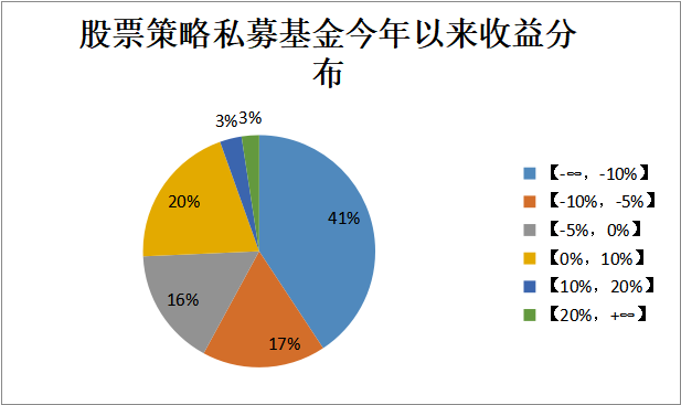 但我們也可以發(fā)現(xiàn),股票策略私募基金今年以來的收益率分布相對均衡,而股票策略私募基金收益率主要集中虧損最大和收益最大的兩個區(qū)間。
