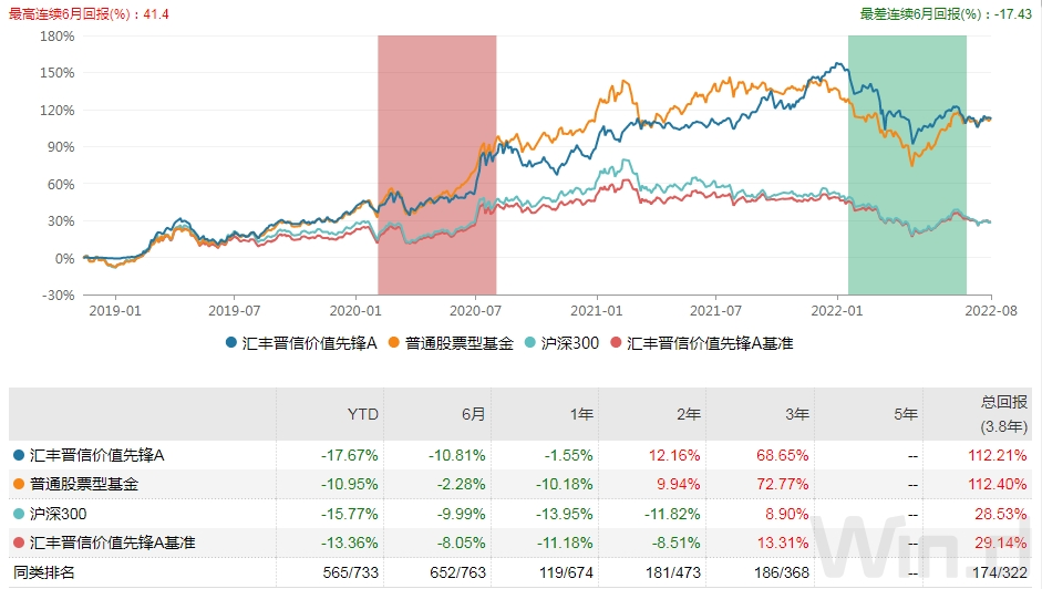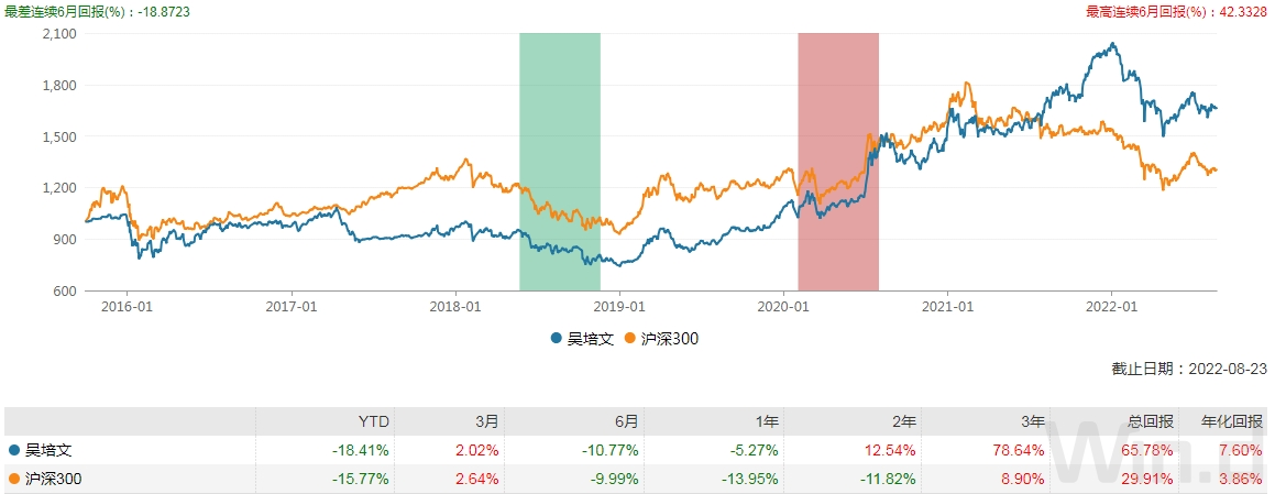 基金經(jīng)理吳培文的代表之作——匯豐晉信價(jià)值先鋒股票A,截止2022年8月23日,匯豐晉信價(jià)值先鋒A從2018-11-14成立以來,已取得112.21%的收益。近三年的回報(bào)率高達(dá)68.65%,遠(yuǎn)遠(yuǎn)領(lǐng)先于滬深300的8.90%。近一年的回報(bào)率為-1.55%,高于滬深300的回報(bào)率-13.95%。