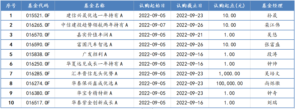 Wind數(shù)據(jù)顯示,本周(9月5日-9月9日)共有28只新基金(A、C份額合并計算)將陸續(xù)發(fā)行,涉及廣發(fā)基金、嘉實基金、華夏基金、景順長城基金、華安基金等多家基金公司。從基金類型來看,本周新發(fā)的產(chǎn)品中權(quán)益類基金擔(dān)當發(fā)行主力軍,共有4只被動指數(shù)型基金及10只偏股混合型基金在本周開啟認購。此外,還有9只純債基金、2只混合二級債基、1只被動指數(shù)型債券基金、1只混合型FOF基金以及1只QDII混合型基金也將在本周面市。