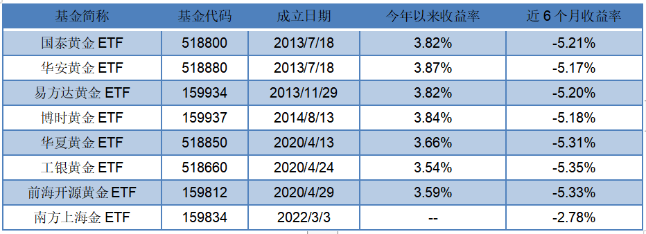 表2 黃金ETF今年以來收益率