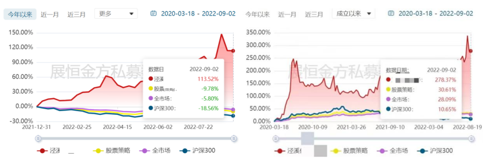 圖2 今年以來(左)和成立以來(右)涇溪****業(yè)績表現(xiàn)