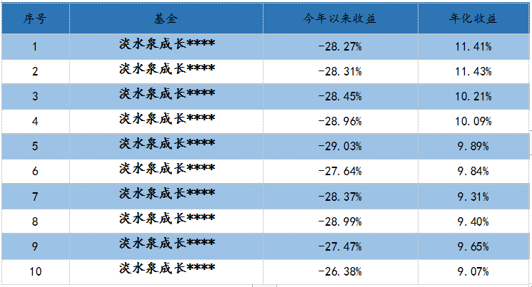 表1 淡水泉成長系列今年以來收益率