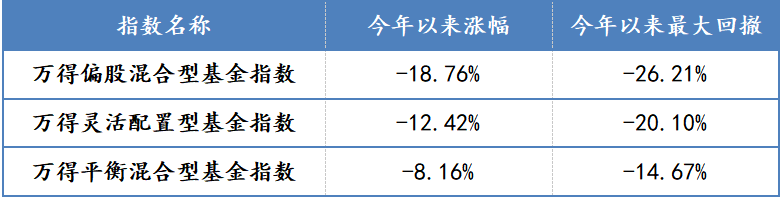 表:萬得基金指數(shù)今年以來表現(xiàn)