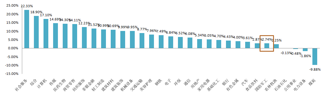 圖一 申萬(wàn)行業(yè)三季度漲跌幅度