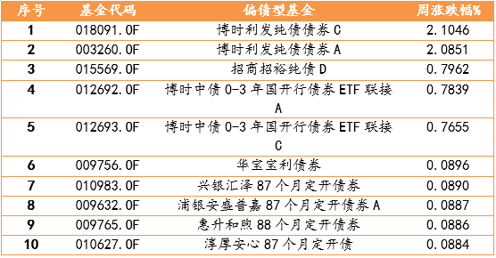 表2 2023/9/4-2023/9/10偏債型基金周度表現(xiàn)TOP10