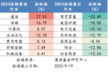 圖3 2023年各行業(yè)漲跌幅排名