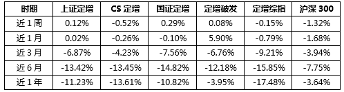 表6:定增板塊部分指數(shù)與滬深300指數(shù)漲跌幅對比