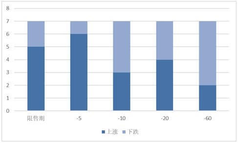 圖6:本周限售股解禁的股票不同時期漲跌統(tǒng)計