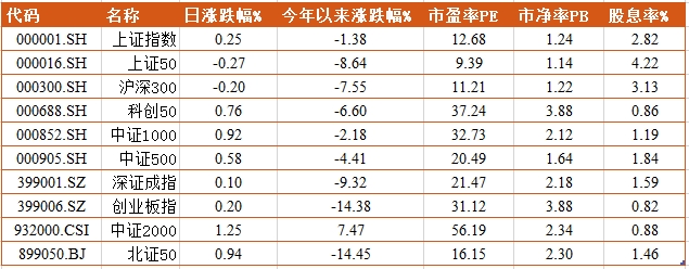 圖4 11月13日各指數(shù)漲跌及PE、PB、股息率