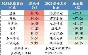 圖3 2023年各行業(yè)漲跌幅排名