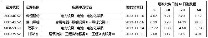 表 4:本周發(fā)布增發(fā)公告的A股上市公司