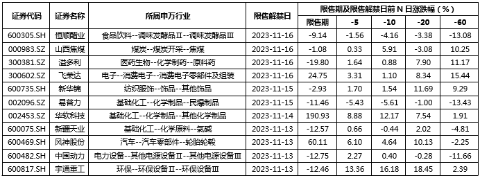 圖 10:本周限售股解禁的股票不同時期漲跌統(tǒng)計