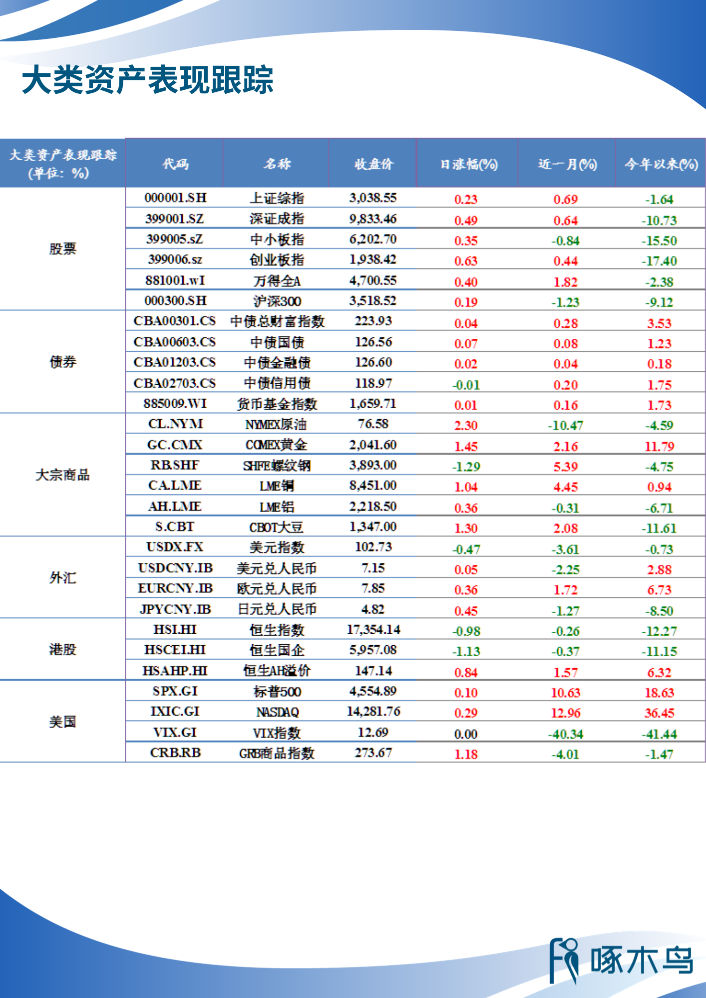 大類資產(chǎn)表現(xiàn)跟蹤