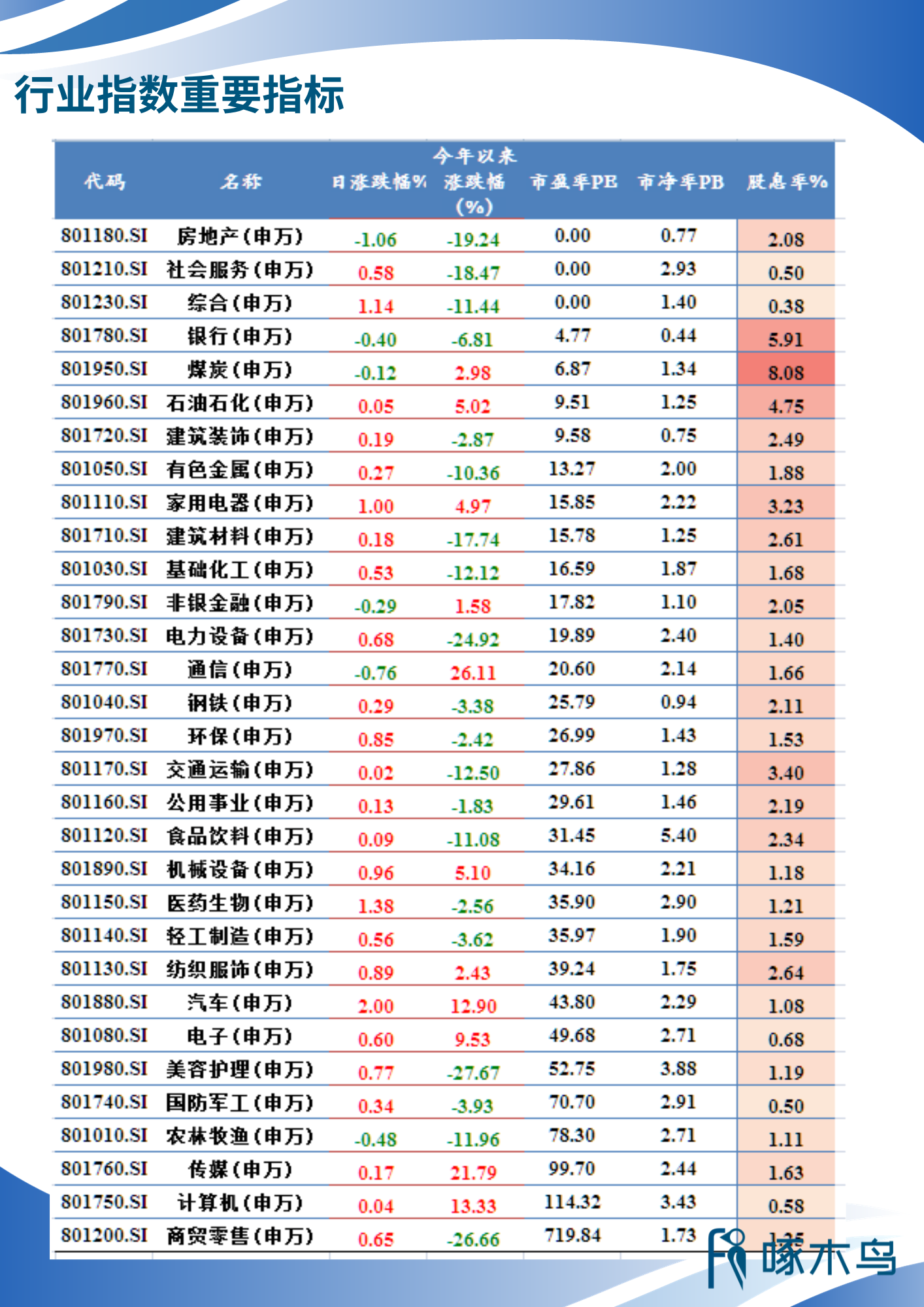 行業(yè)指數(shù)重要指標