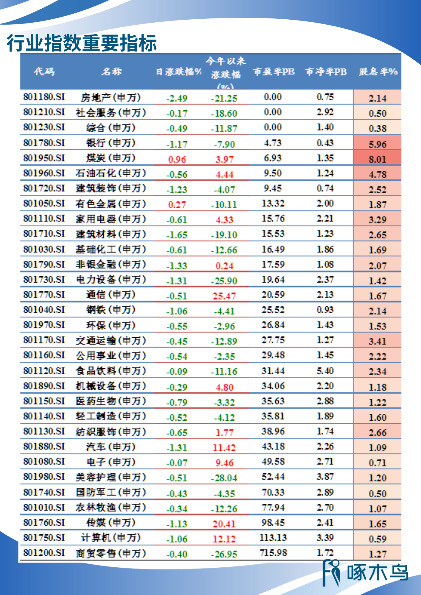 行業(yè)指數(shù)重要指標(biāo)