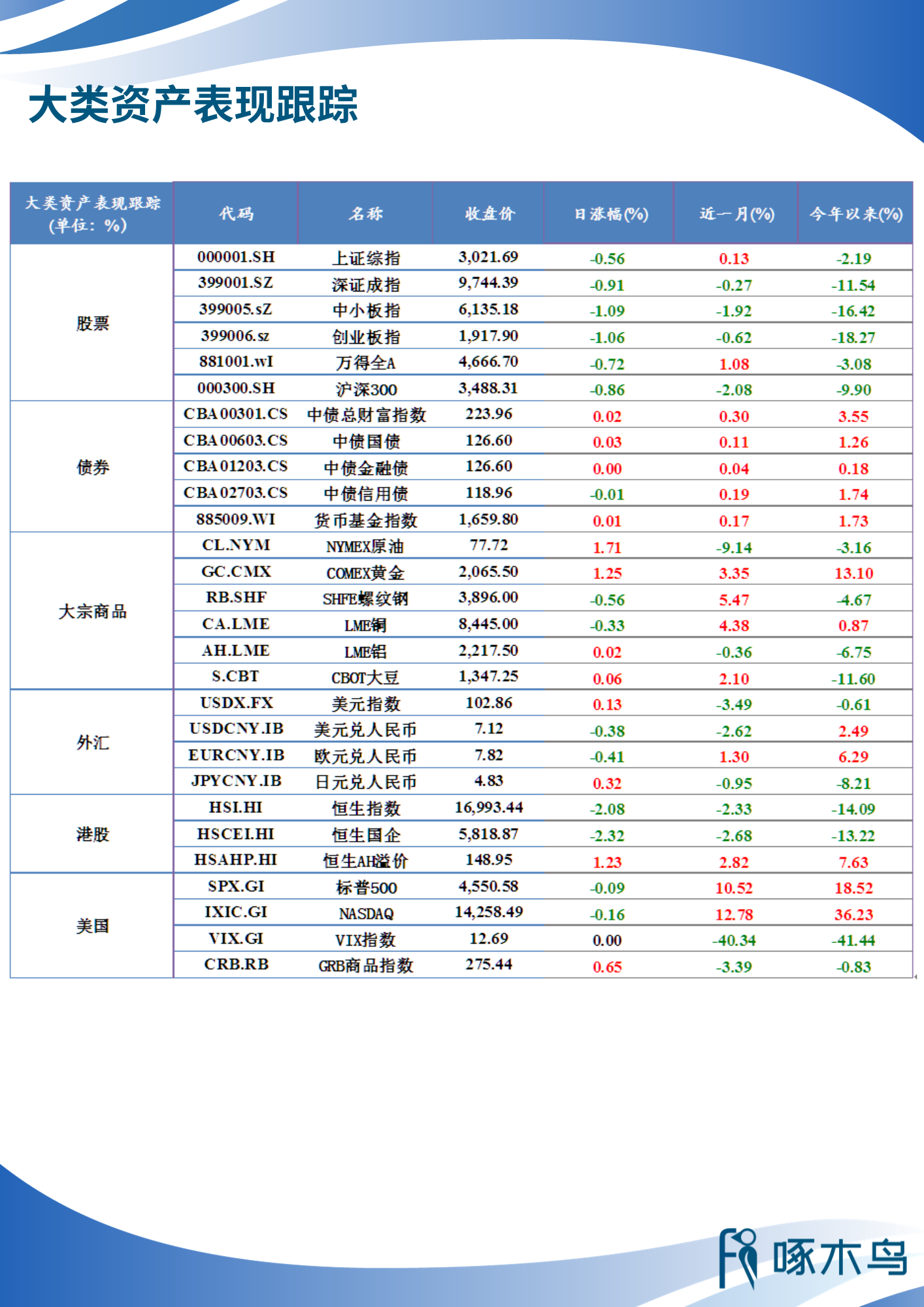 大類(lèi)資產(chǎn)表現(xiàn)跟蹤