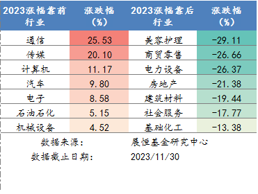 圖3 2023年各行業(yè)漲跌幅排名
