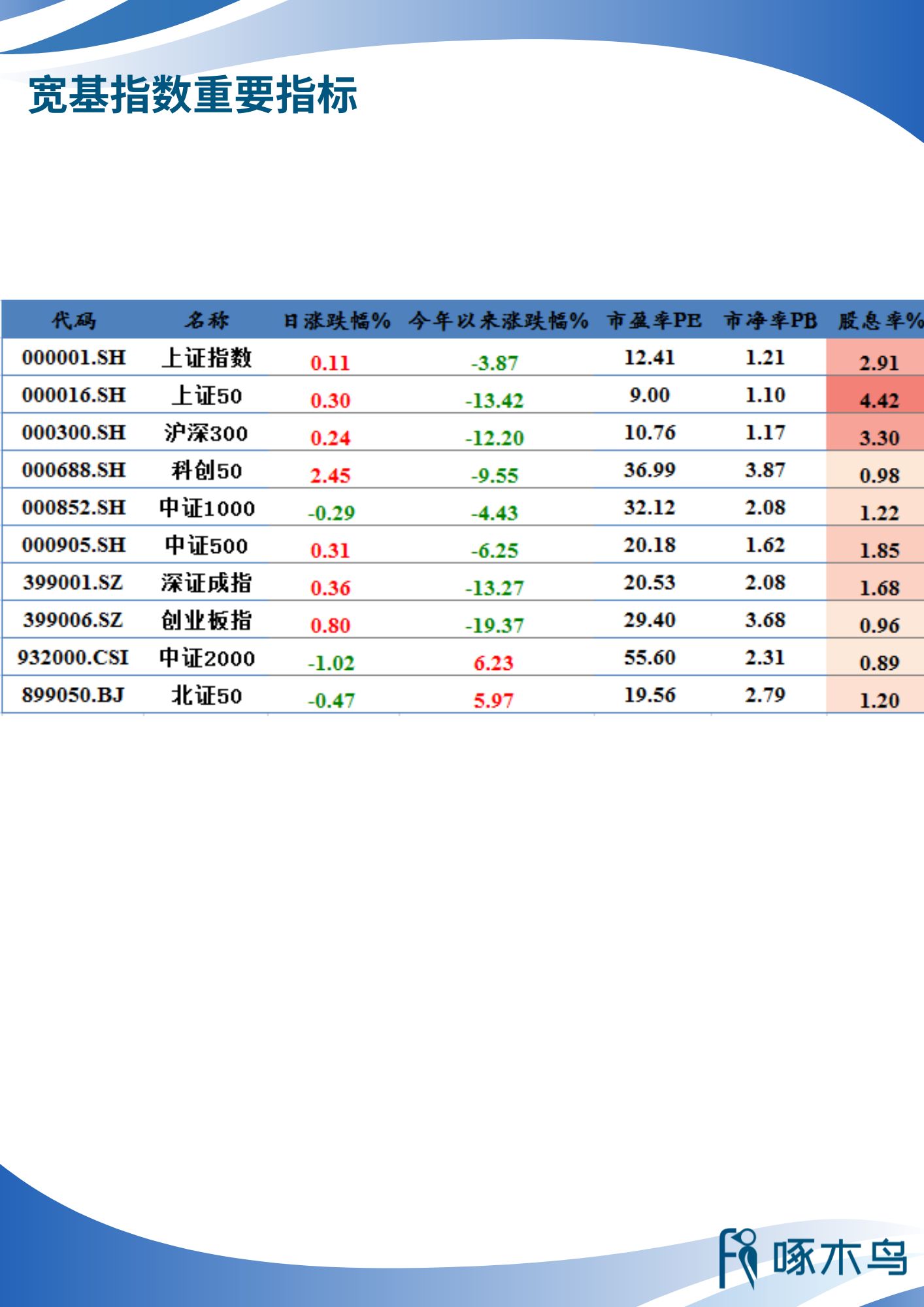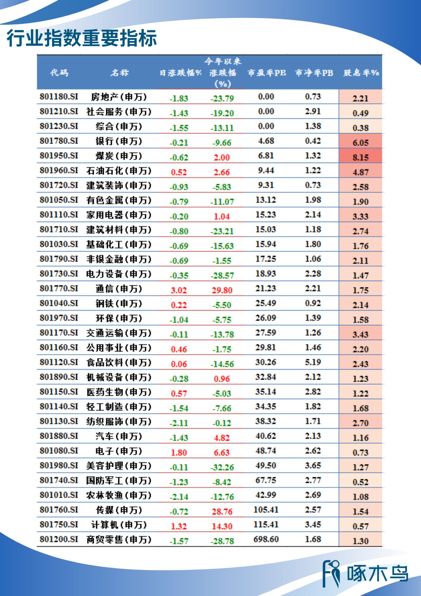 行業(yè)指數(shù)重要指標