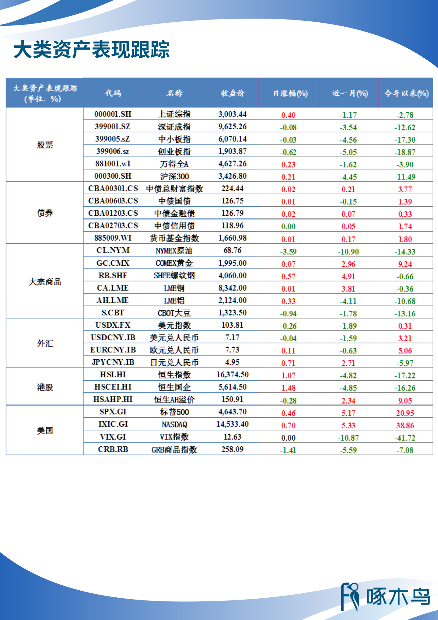 大類資產(chǎn)重要指標(biāo)