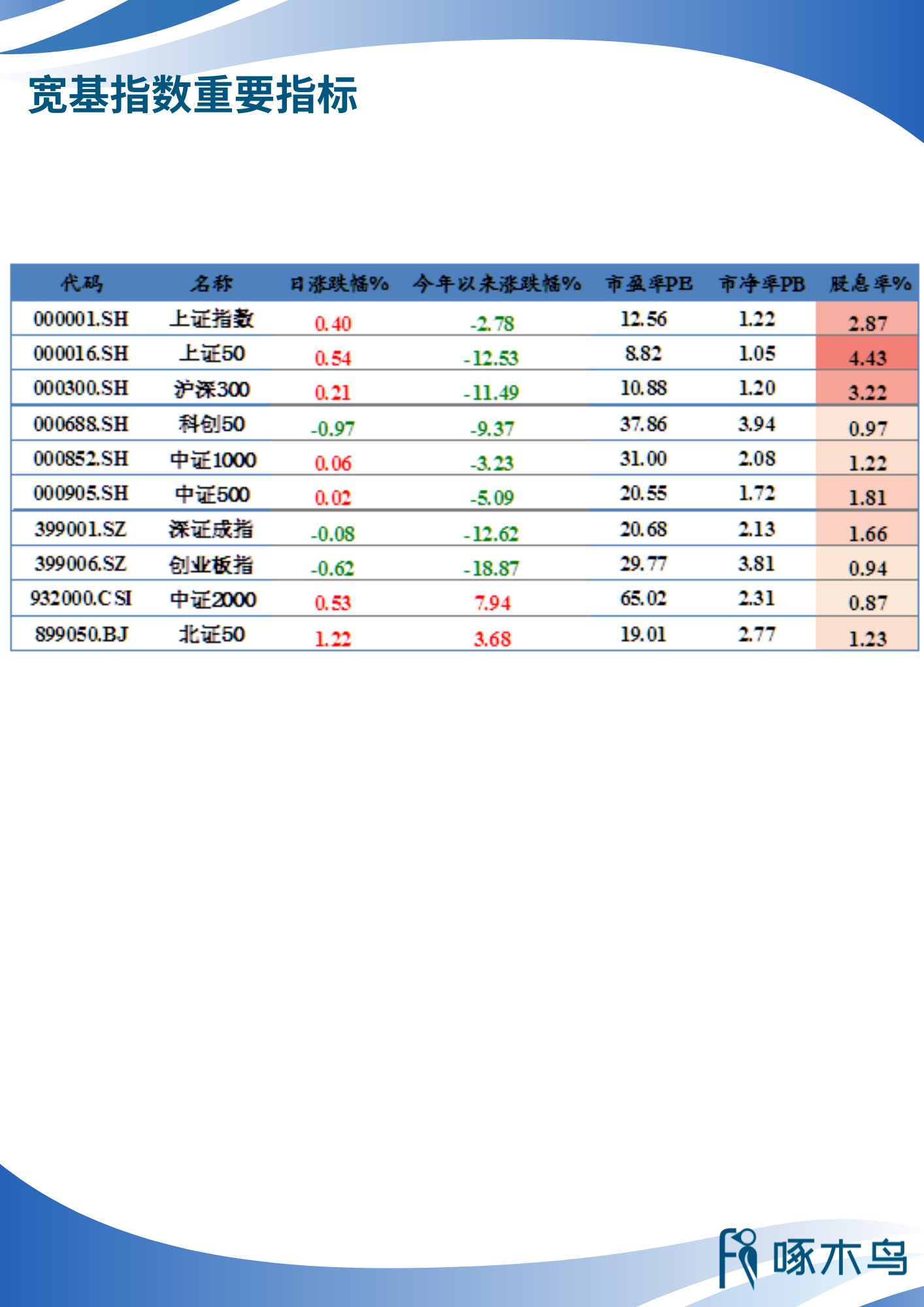 行業(yè)指數(shù)重要指標(biāo)