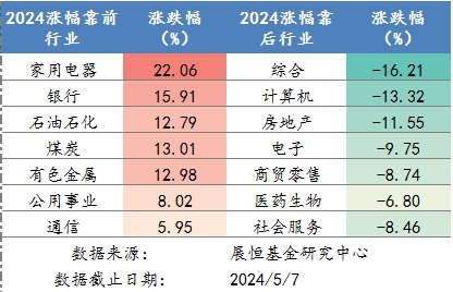 圖3 2024年各行業(yè)漲跌幅排名
