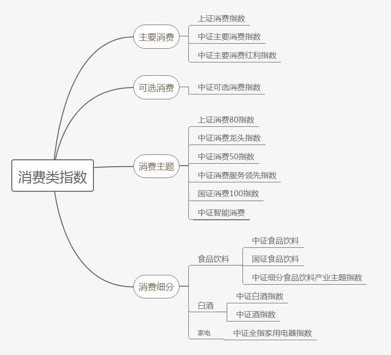 消費指數(shù)總體分為主要消費、可選消費、各種消費主題和細分行業(yè)指數(shù)。