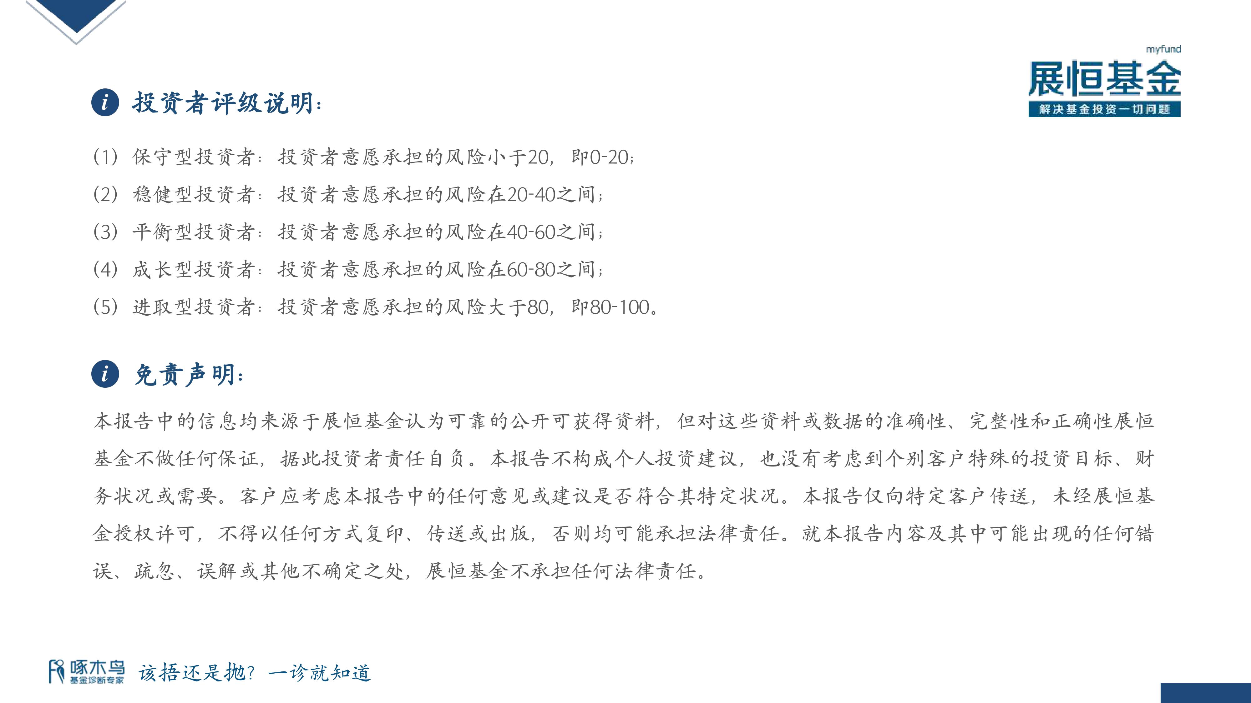 風險提示:展恒基金網(wǎng)所提供基金產(chǎn)品均由第三方機構(gòu)管理,展恒基金不對基金產(chǎn)品業(yè)績做任何保證, 投資者應(yīng)仔細閱讀基金產(chǎn)品的法律文件,了解產(chǎn)品風險和收益特征(包括系統(tǒng)性風險和特定產(chǎn)品所特有的投資風險等),根據(jù)自身資產(chǎn)狀況、風險承受能力選擇適合自己的基金產(chǎn)品。展恒基金網(wǎng)刊載的所有信息(包括基金產(chǎn)品宣傳推介材料)僅供投資者參考,不構(gòu)成展恒基金網(wǎng)的任何推薦和投資建議?;疬^往業(yè)績不代表未來業(yè)績的預示或預測,投資者應(yīng)獨立審慎決策、獨立承擔風險。